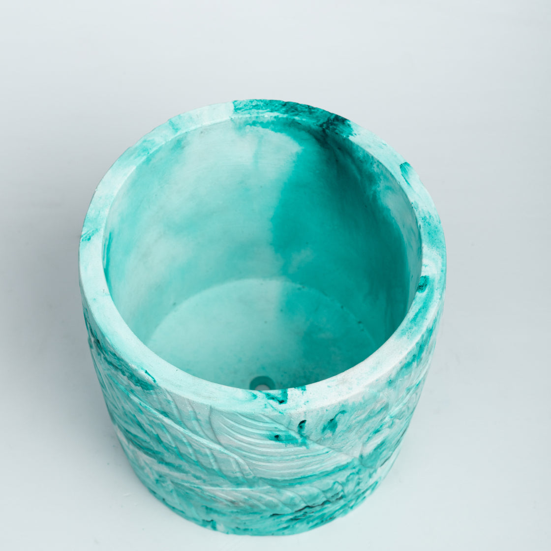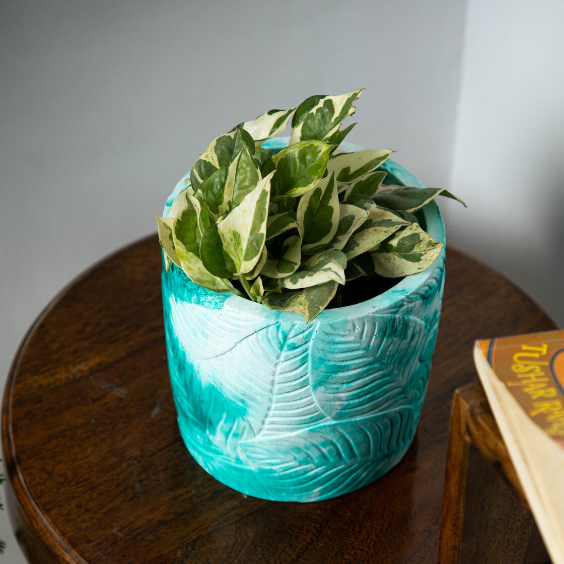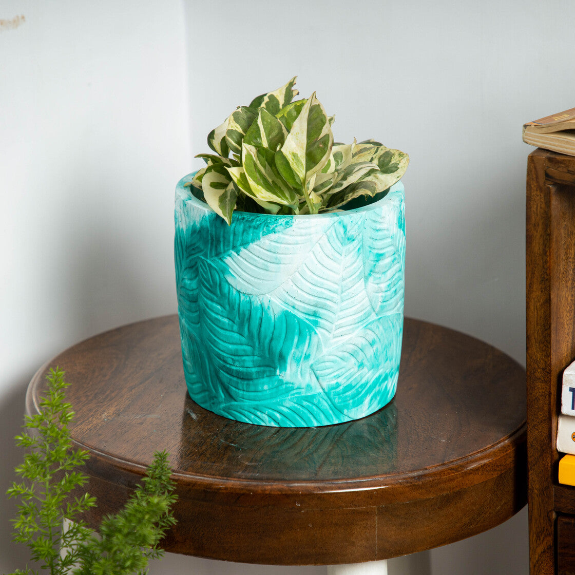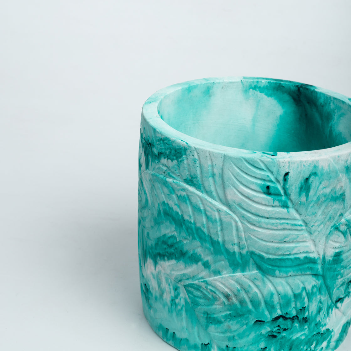 Frond-Mint Marble-Leaf Imprint Planter, features an Embossed Leaves texture
