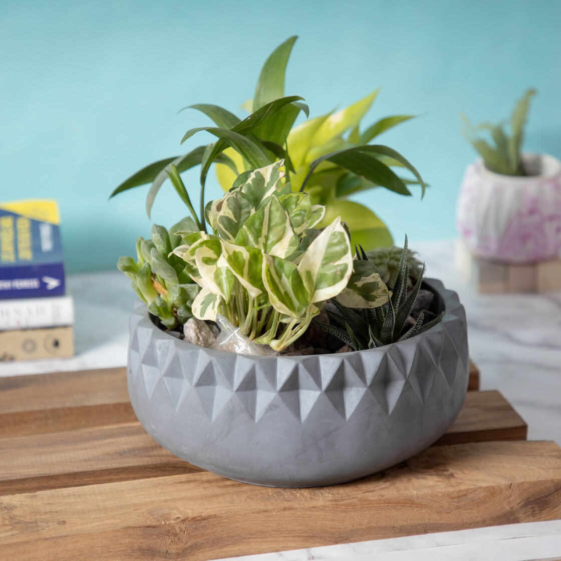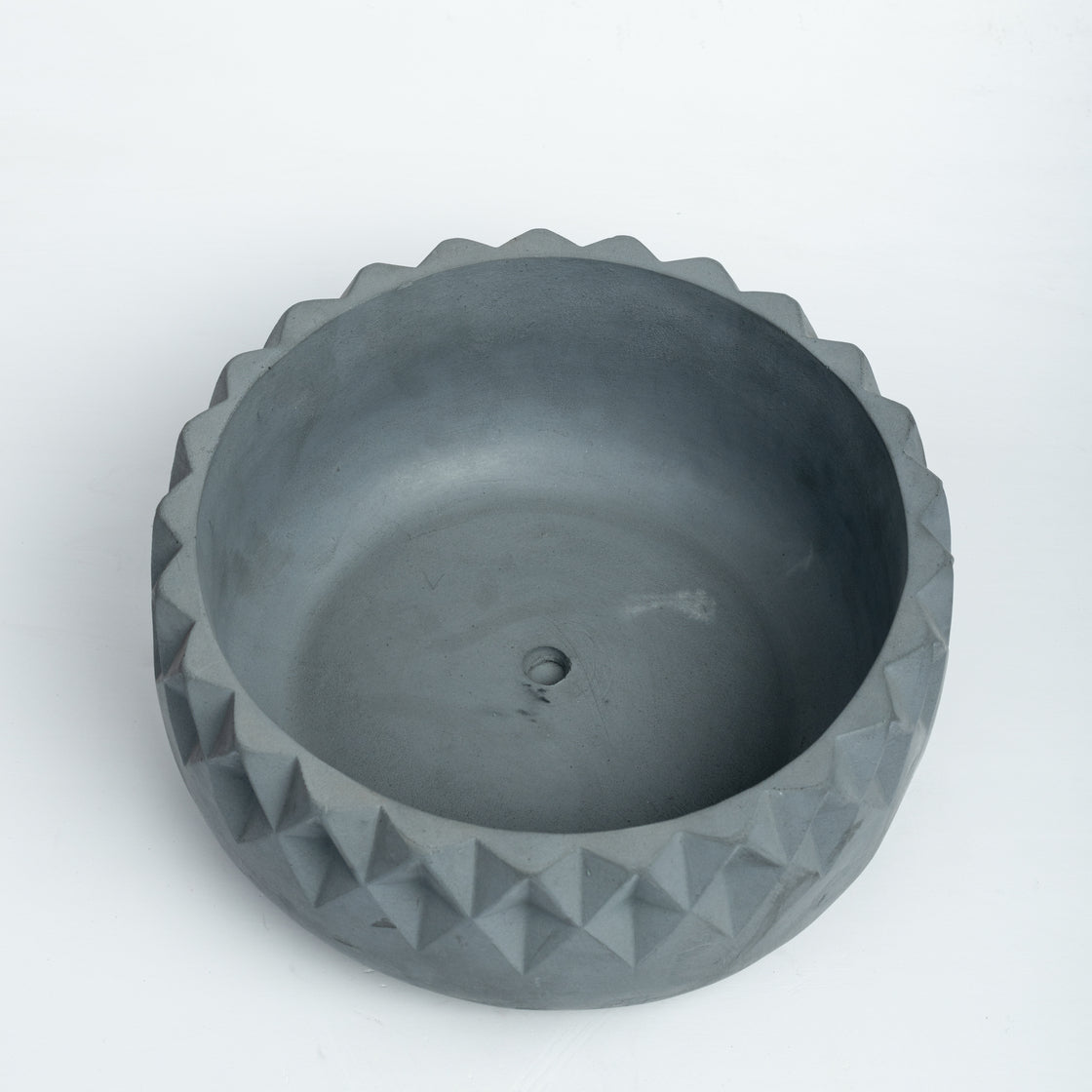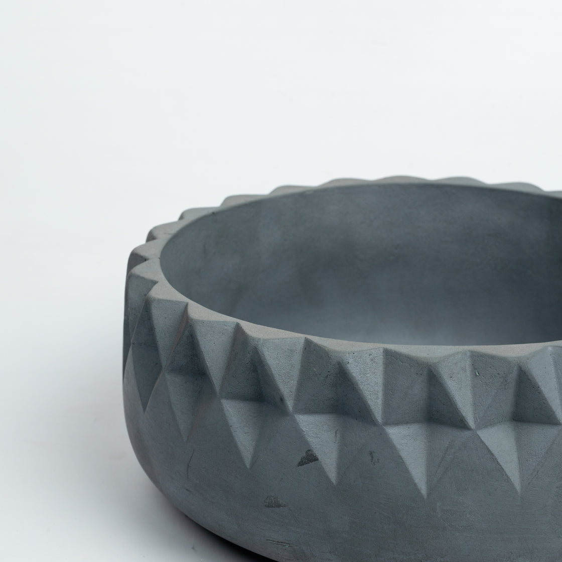 Add to your living room’s tablescape with this beautiful Planter bowl. Eat your acai and oatmeal in style each morning. The highlight of the design is the array of diamond cuts across the neckline of the bowl. This gives a unique profile to the bowl when viewed from above. This Planter bowl from the house of Greyt is handcasted in Greytcrete.