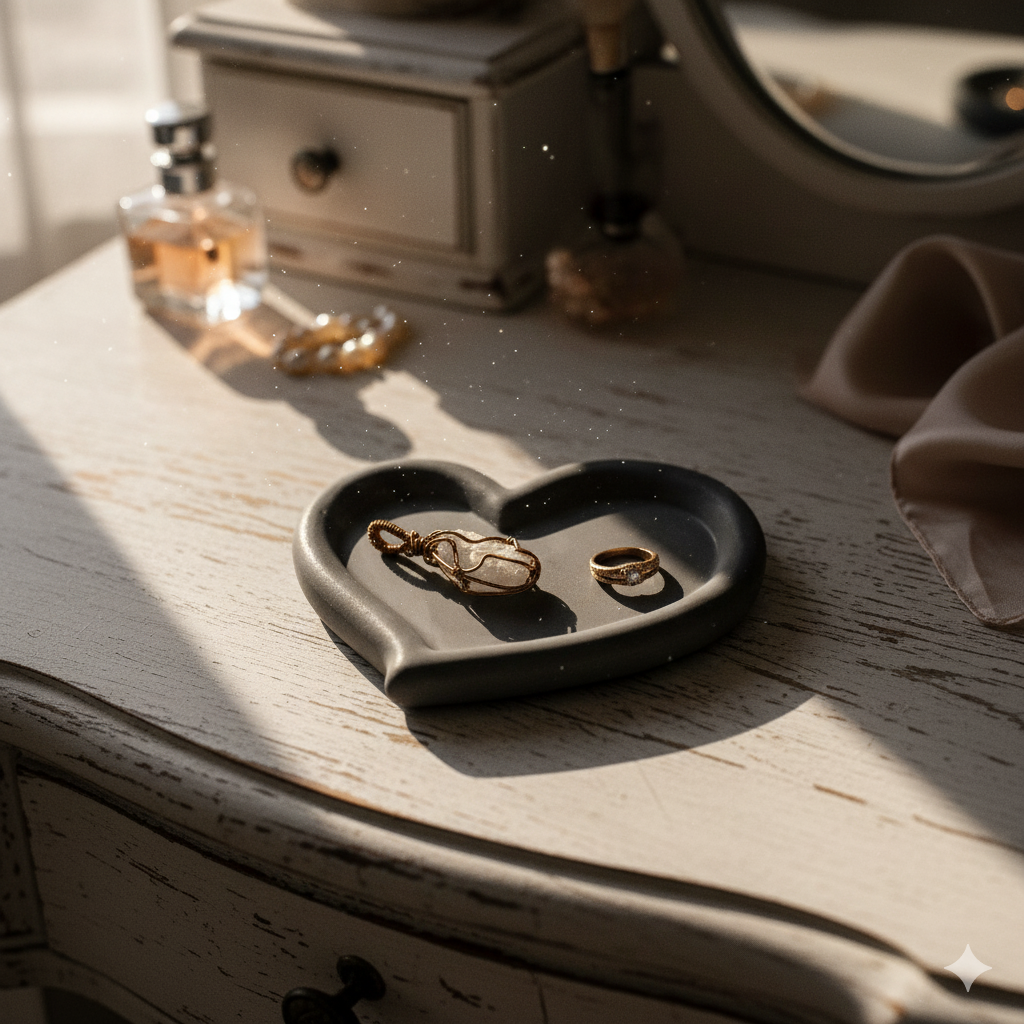 Sweet and sculptural, CherishTray is a heart-shaped concrete tray that captures warmth in a cool, modern form. Perfect for holding your favorite rings, tiny trinkets, or gifting with love, it blends softness and structure — a poetic addition to any bedside or vanity.