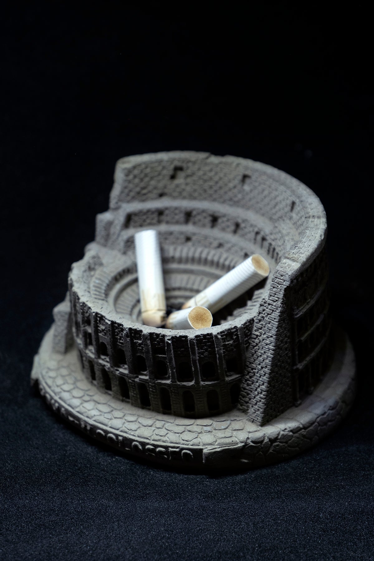 Colosseum Monument Miniature Dark Concrete - Architectural Desk Accessory Paper Weight or Roman Ashtray