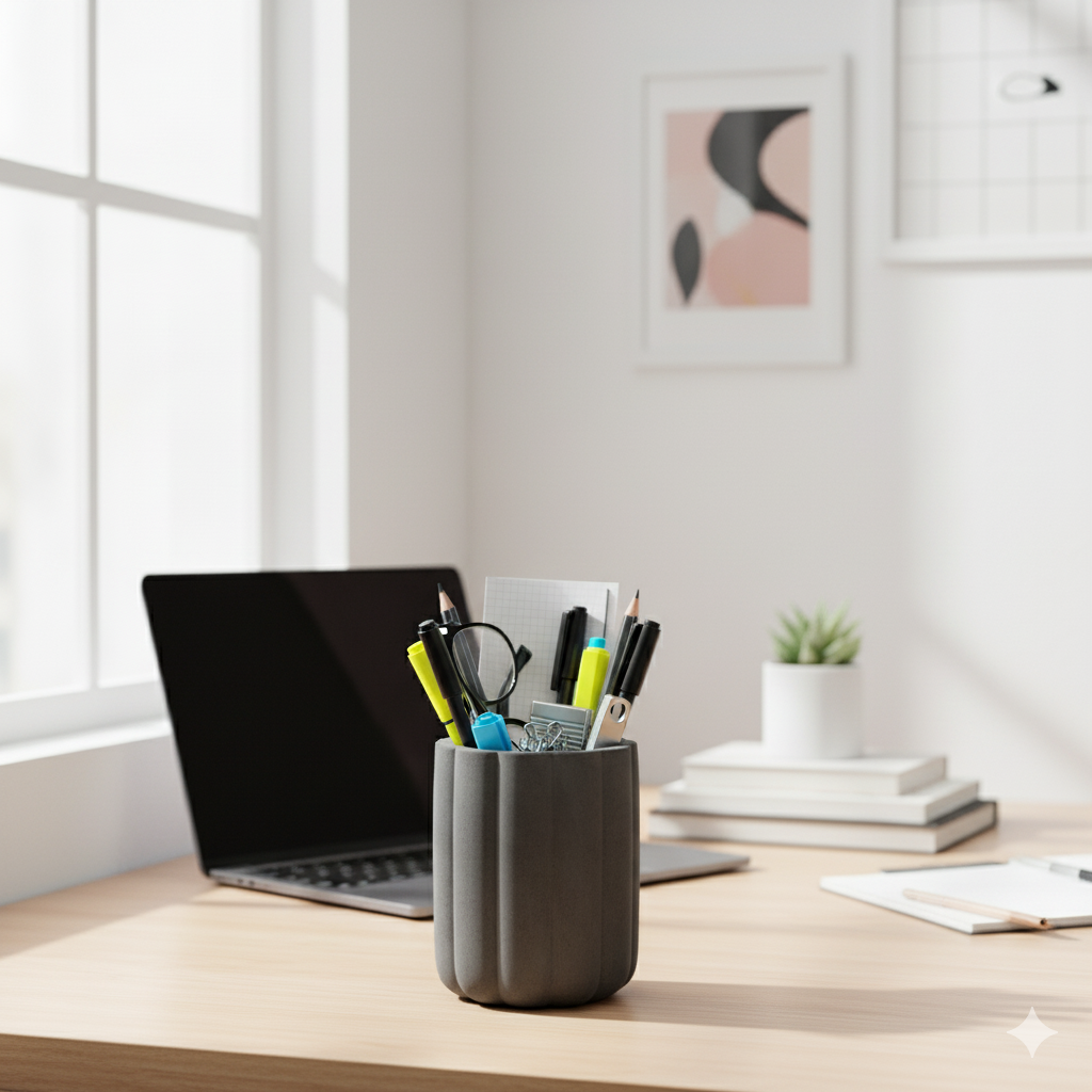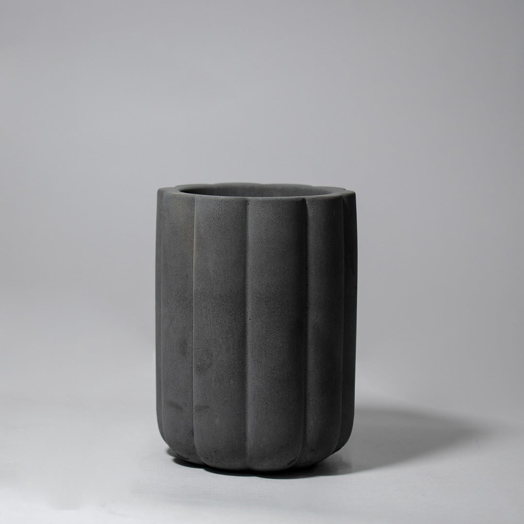 This is more than storage; it's a design accent. The Flute Hex Holder features a striking six-sided form and bold vertical grooves that add a dynamic tactile element to any surface. The sturdy, dense concrete construction ensures stability for heavy-duty tools or tall items. Use it as a minimalist desk organizer or a stylish small planter—its monochromatic depth makes a clean, sophisticated statement anywhere.