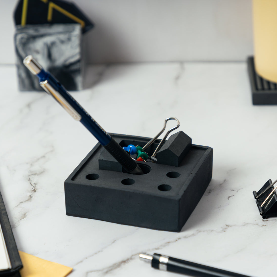Even though we all have hundreds of pens, we can't seem to find one that works when we really need it. Keep your most used and preferred pens on display beforehand to relieve yourself of this inconvenient yet annoying situation. The square-shaped plot of land represents a part of a dwelling. On this land parcel, there are two house units. There are three hollow nooks behind this for your pens to rest in. With this distinctive yet exquisite design, you may add a touch of fun to your workstation.