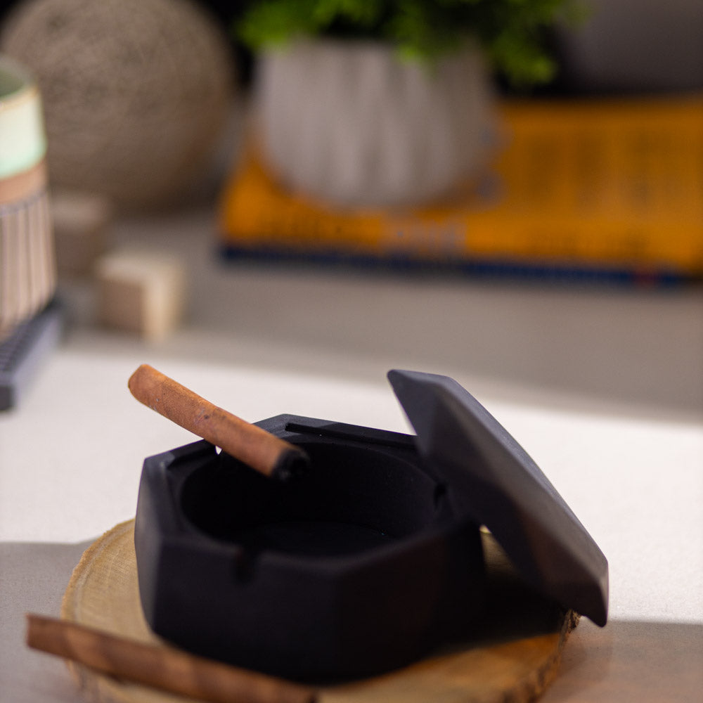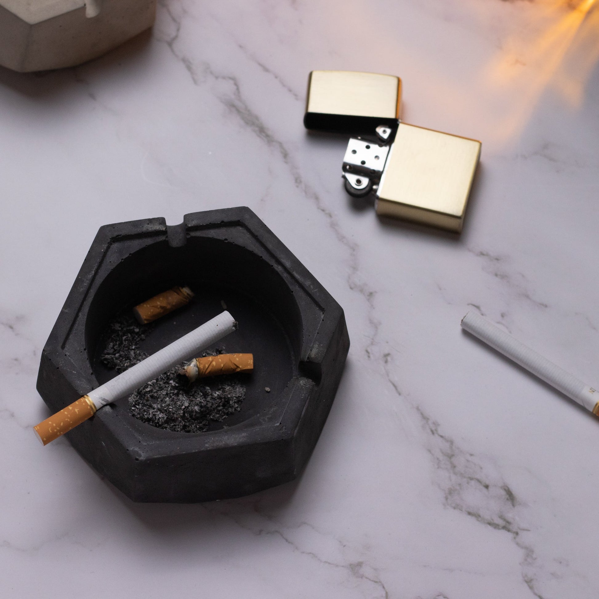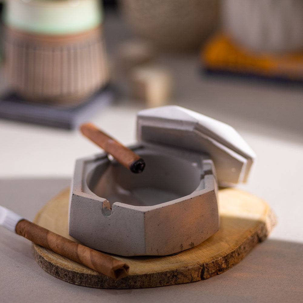 Classic Hexagonal Ashtray with a twist of concrete. Easy to clean the tough stains on Concrete Ashtray with kitchen detergent and dry with a towel. The burned stains can be removed with sandpaper.
