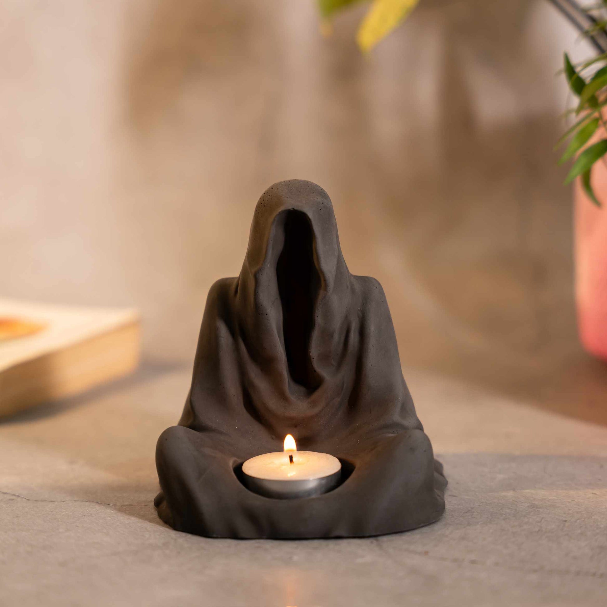 Monk in a Robe- Concrete Tealight Candle holder featuring a Monk Clad in a Medieval Robe