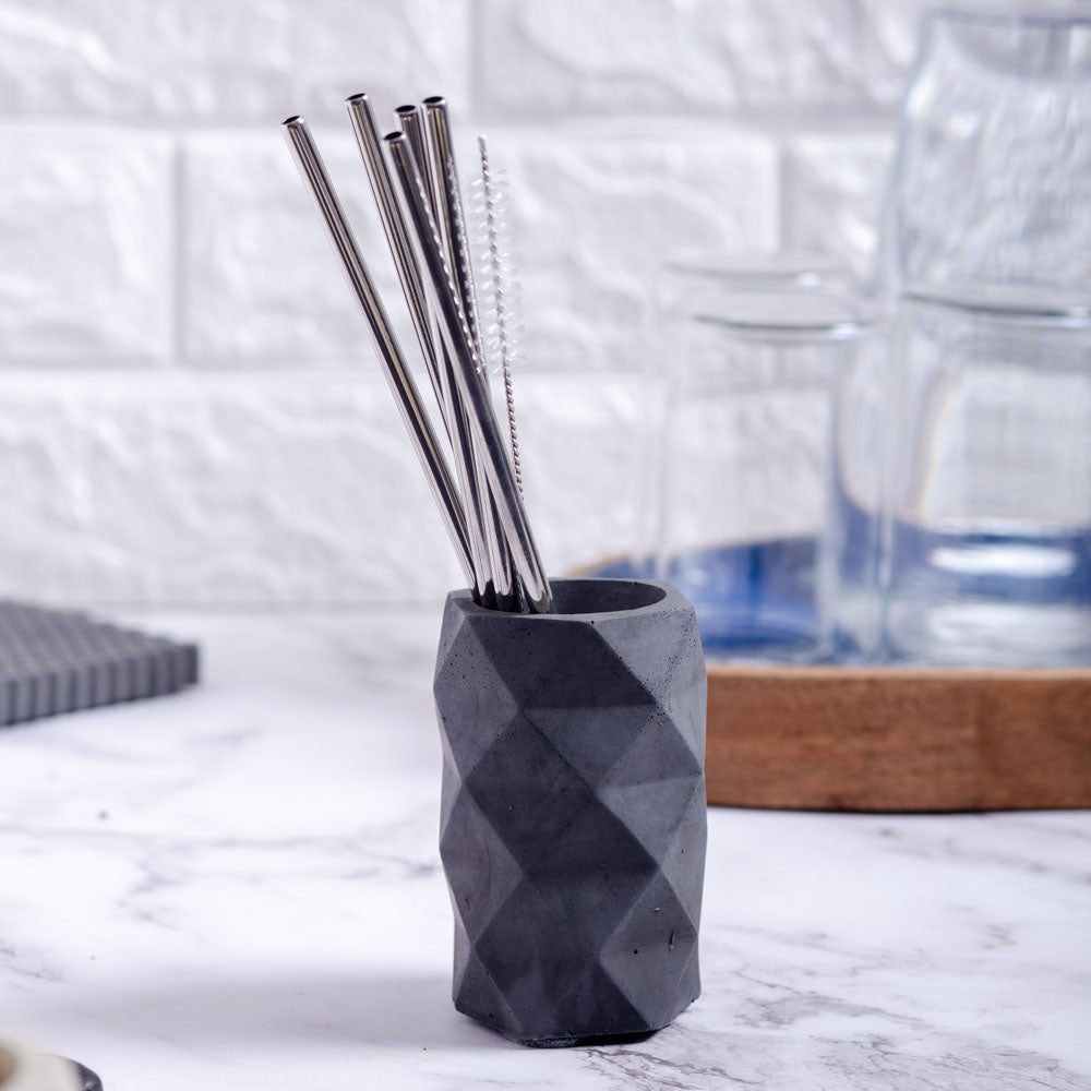 Amp up your space with contemporary elements! This can be done by making tiny changes such as bringing in a new pen stand. This pen stand features a faceted pattern with an interplay of multiple triangular faces. The sophisticated design is contemporary and trendy. It is spacious and offers a cylindrical hollow on the inside to house your pens, pencils, paintbrushes, and rulers. Not only this, but its versatile design makes it multi-functional- one can also employ it for housing their toothbrushes in the bath, spoons, and ladles in the kitchen.