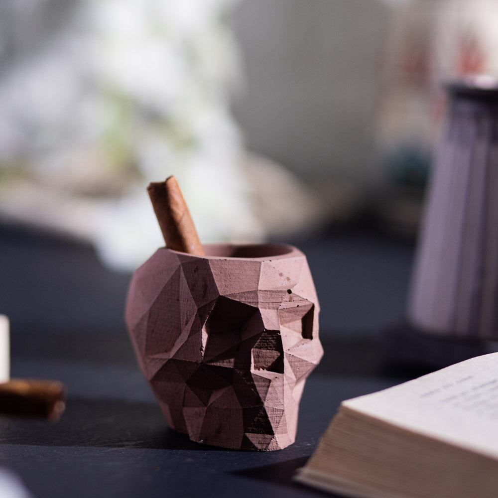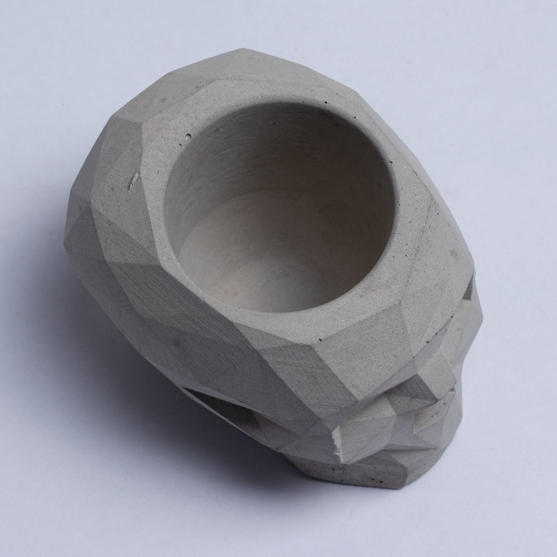 Skull Dark Concrete - Unique geometric skull shaped 3D pointed planter / Paperweight for Home & Office