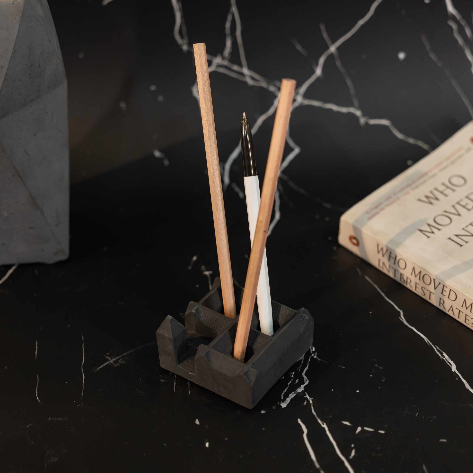Squamid-Black-TableTop Decor from the house of Greyt- Square Shaped Holder with a unique design- can be used as a pen stand, toothbrush holder, makeup holder
