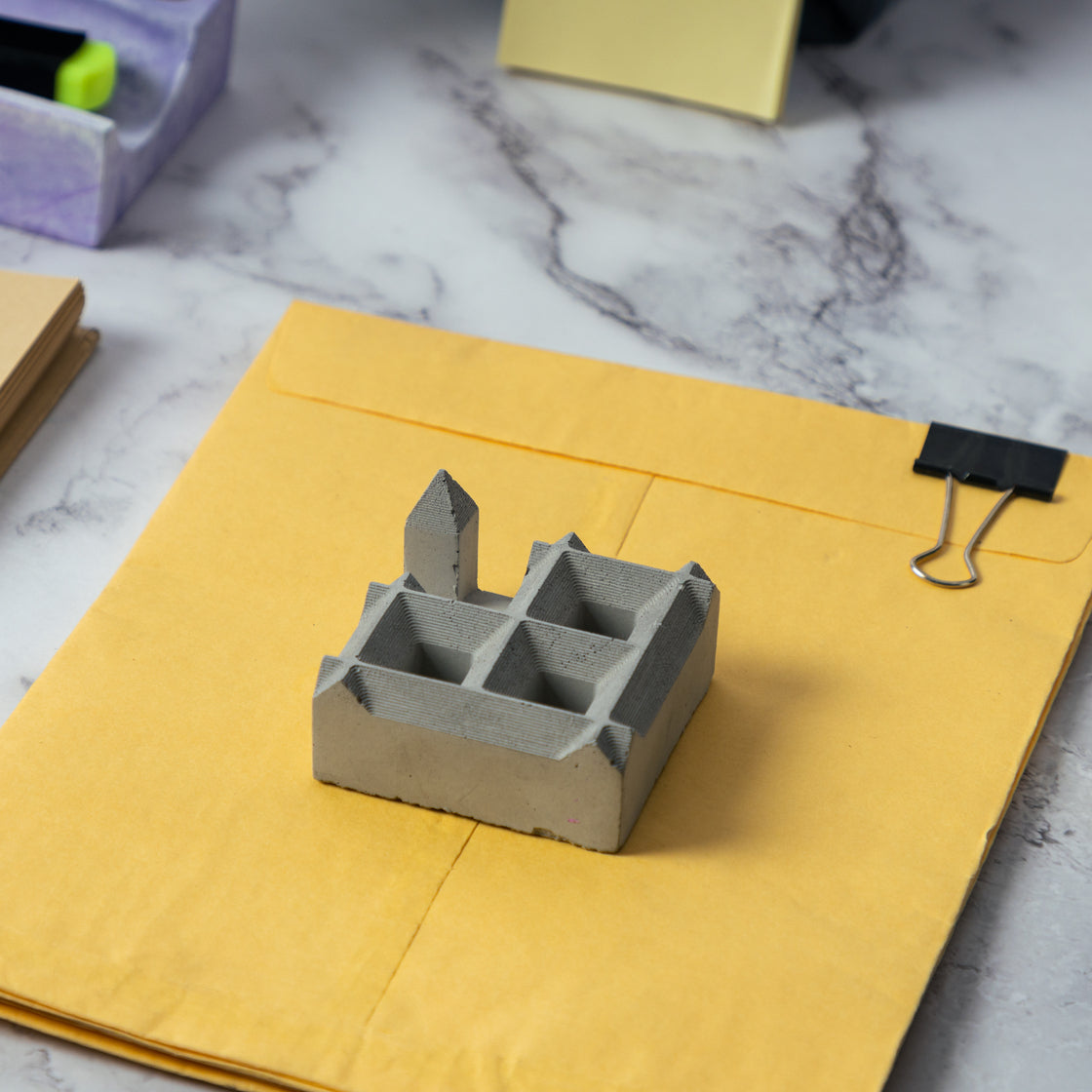 Squamid Dark Concrete - Table Top Decor from the house of Greyt- Square Shaped Holder with a unique design- can be used as a pen stand, toothbrush holder, makeup holder