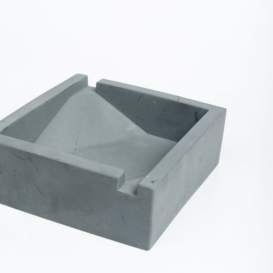 The sleek square design adorns a minimal look with clean cuts on the outside. The interiors of the ashtray exhibit a series of levels which add depth to the form and enhance the overall appeal of the product. Sleek and thoughtful details emphasize the aesthetic we have tried to hand-cast. Yes, of course, the level variation makes the product more functional. With designs like these, we attempt to redefine simplicity that matches the contemporary designs of these times.