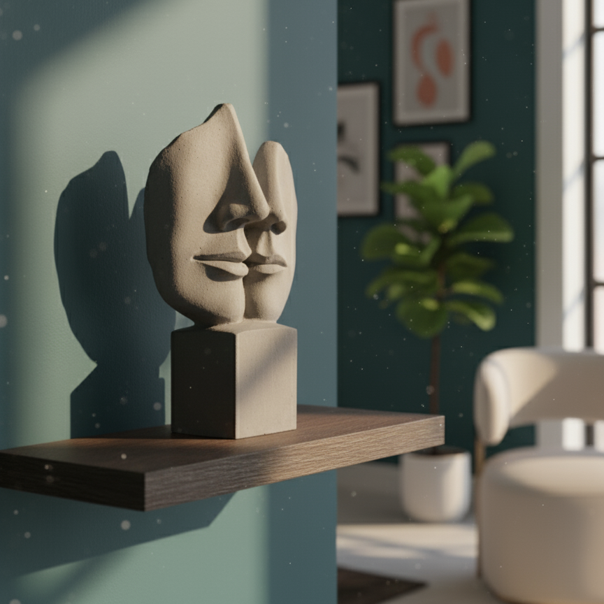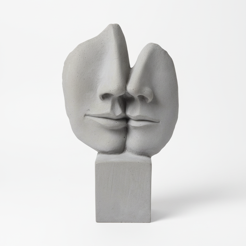 Elevate your curated space with The Duet Form. This striking sculpture captures two faces in elegant profile, creating a continuous, minimalist loop that symbolizes connection and introspection. Cast in a refined, neutral material, it uses negative space as a compelling design element. Place this piece on a mantel or shelf for an instant touch of contemporary art and calming presence.