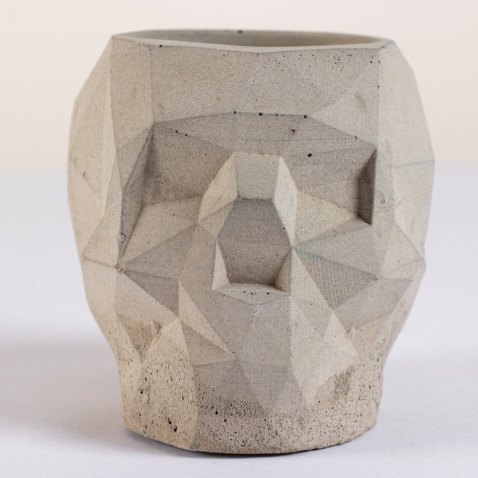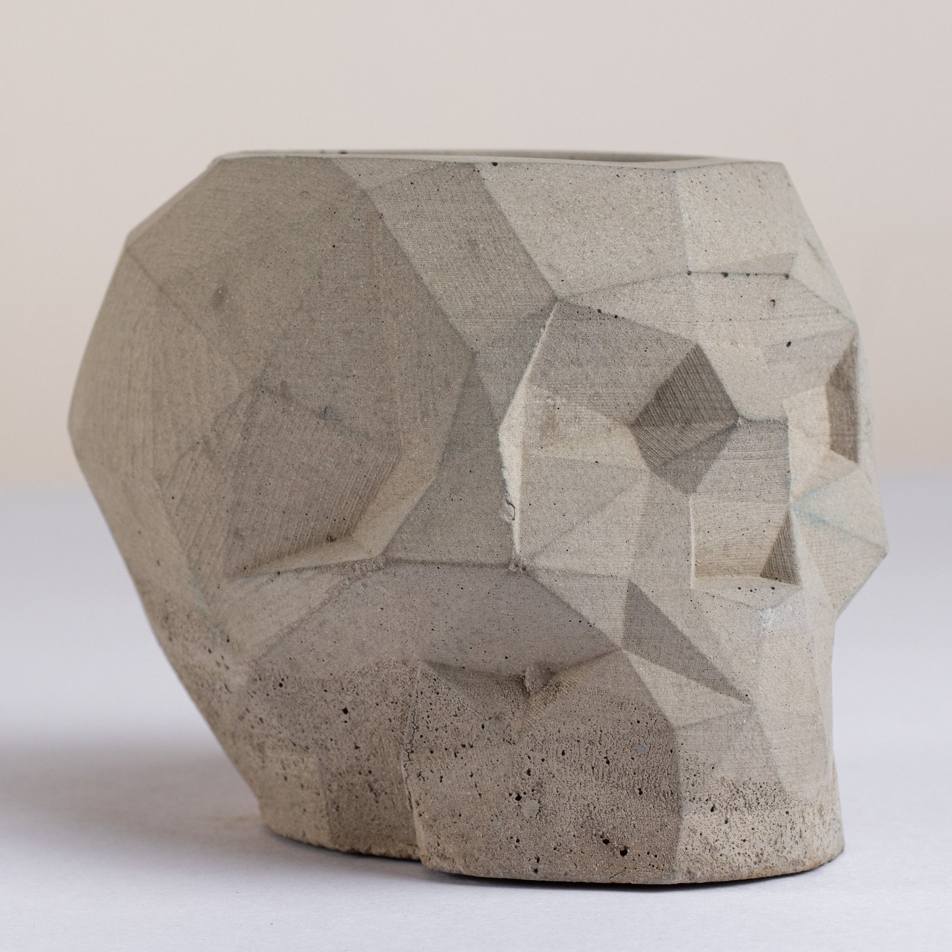 Skull Cement Finish - Unique geometric skull shaped 3D pointed planter / Paperweight for Home & Office