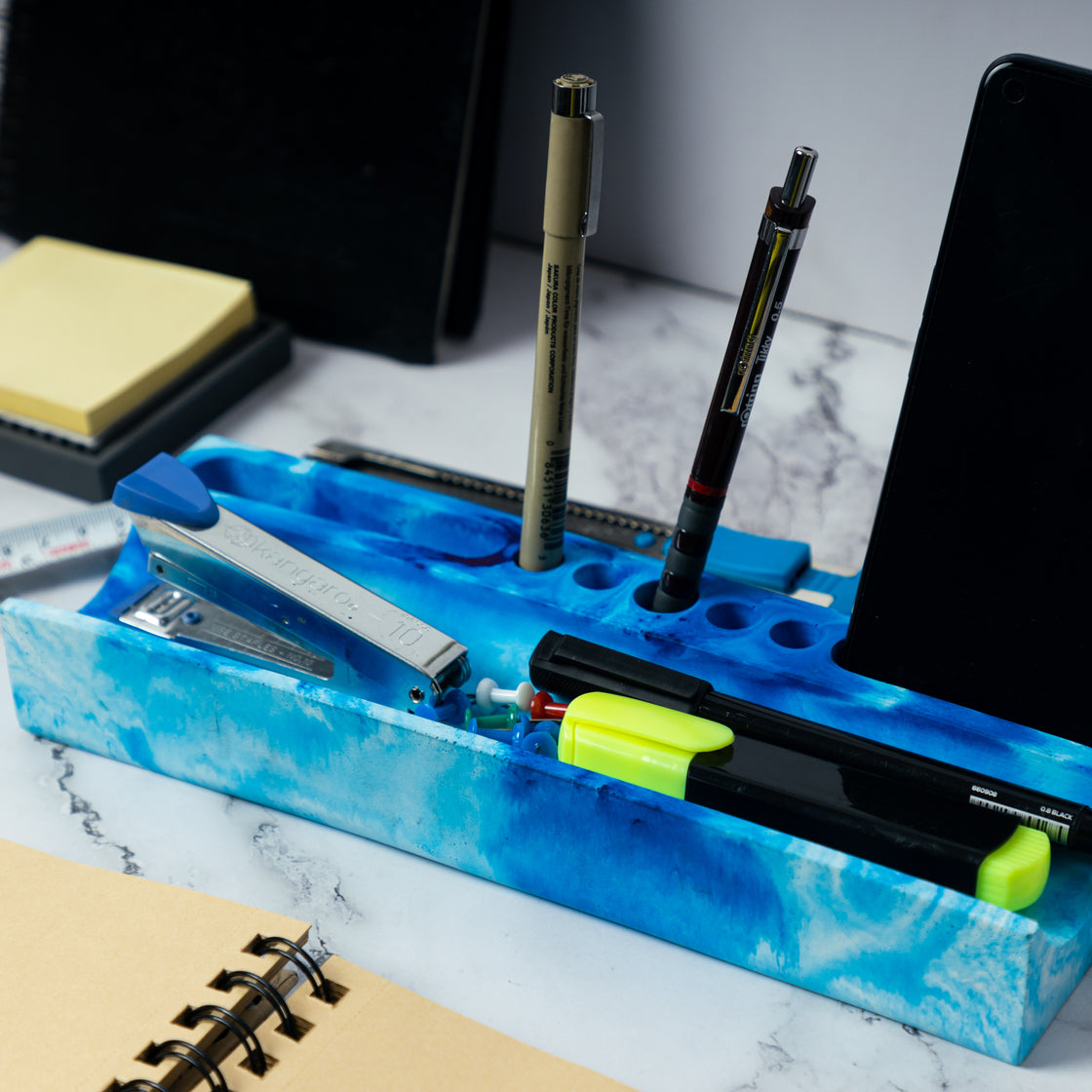 Trough Organiser-Mint Marble-Cardholder and pen stand