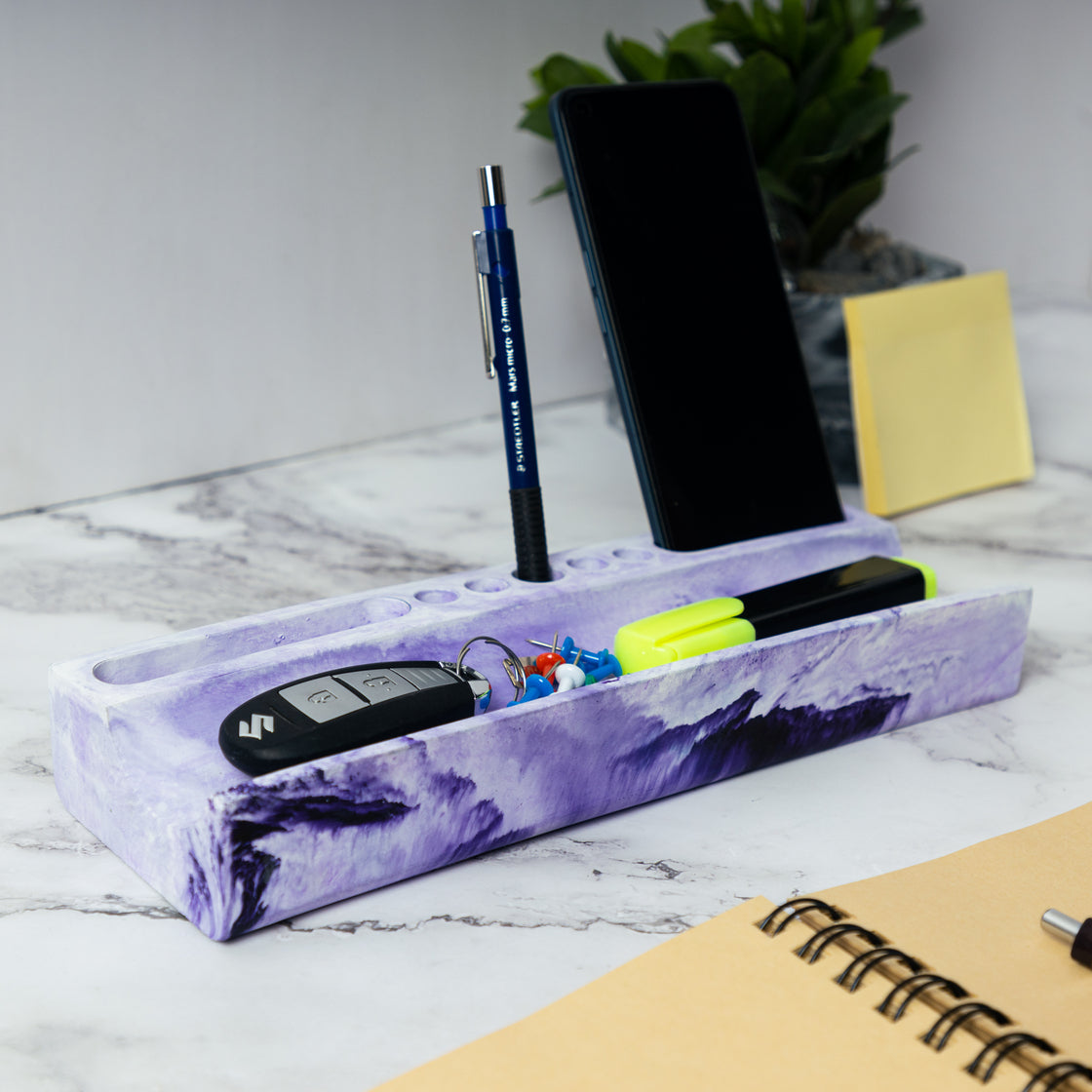 Trough Organiser-Orchid Marble-Cardholder and pen stand