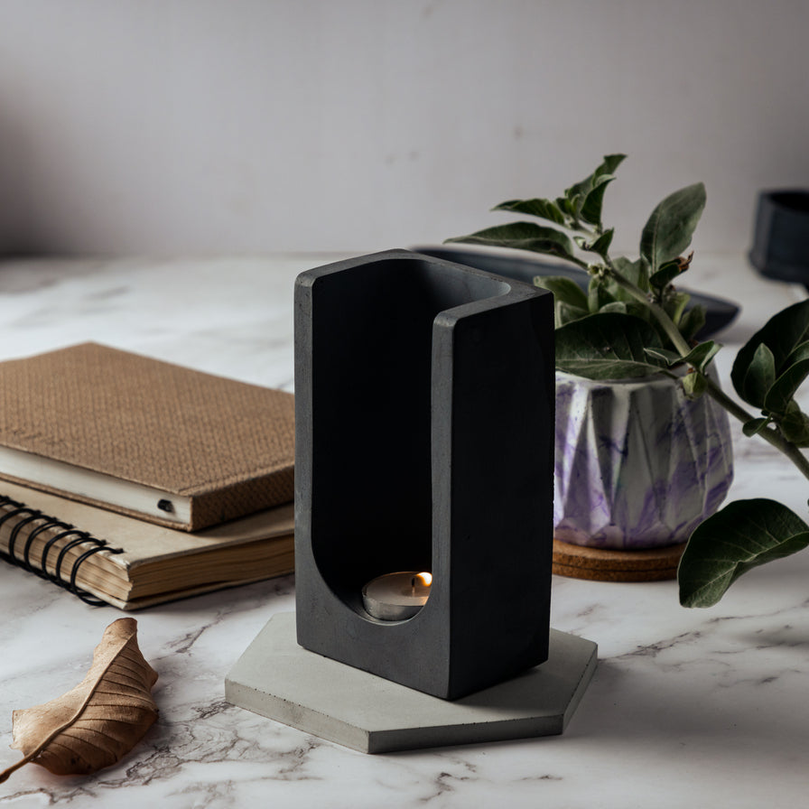 Trouval- Dark Concrete Sleek Tea light holder featuring a contemporary design
