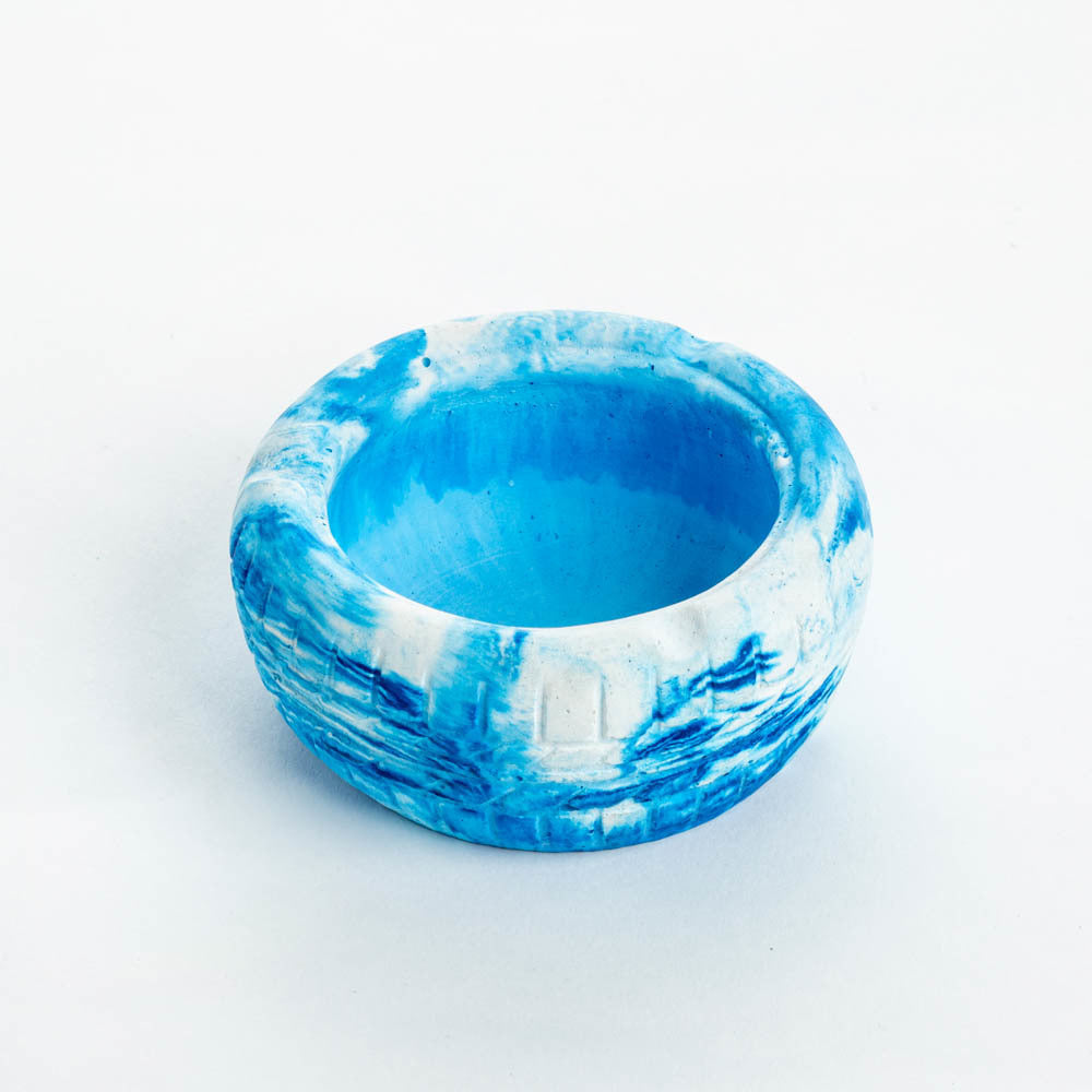 Rubber tyre imprint on concrete? Oh yeah! This is what we love the most about concrete. With concrete, the possibilities of playing with design and experimenting with your heart are endless. If you aren’t new here, you know how much we are obsessed with miniature- everything? Tyrasht is a sturdy circular ashtray with a scooped-out niche inside to rest your cigarette stubs. Rubber tyre ashtrays are in now because they look another level cool! We are all hearts for the same. If miniatures are your thing, this one will look totally chic. And, If you are on the lookout for a gift, ashtrays, particularly this one, would be a recommendation.